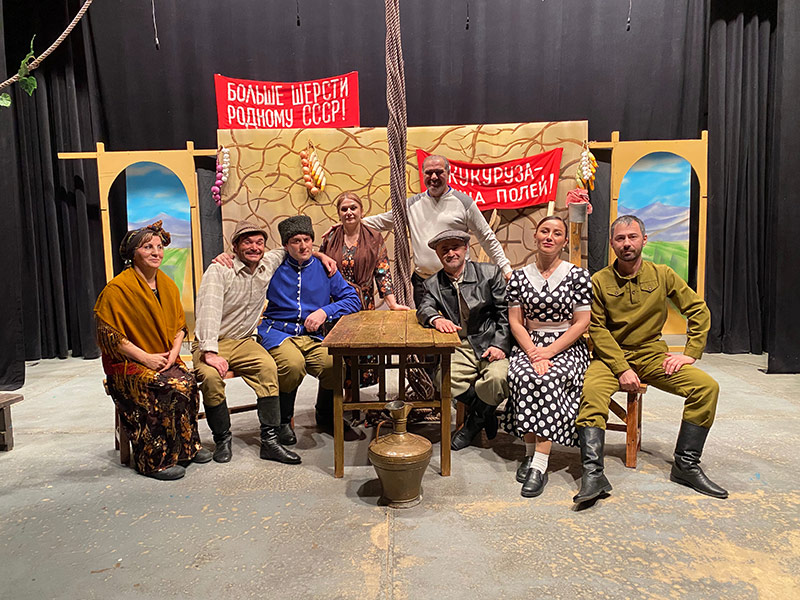 Постановка на даргинском языке, завершающая вечерние показы 2025 года, стала прекрасным предновогодним подарком от полюбившегося всем зрителям театра режиссёра-постановщика, народного артиста Республики Адыгея Аслана Хакуя. Он рассказал, что слово «женихи» на адыгейском звучит как «псэлъыхъохэр» — оно имеет сакральное значение. Его дословный перевод — «найти родственную душу». Именно этим и заняты герои пьесы Мамия Ереджиба — они ищут свою любовь.